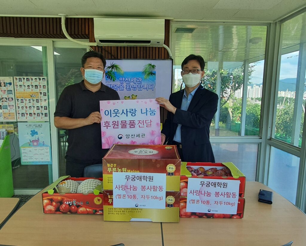 4일(목) 양산세관에서 방문하여 과일 메론과 자두를 전달해주셨습니다.